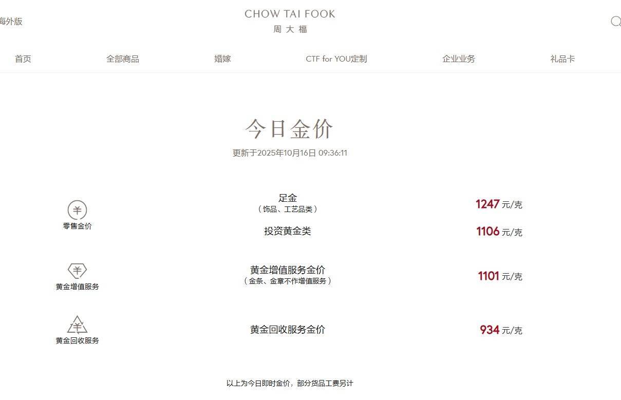 周大福今日足金饰品、工艺品类价格1247元/克,较昨日价格1235元/克上涨12元/克。